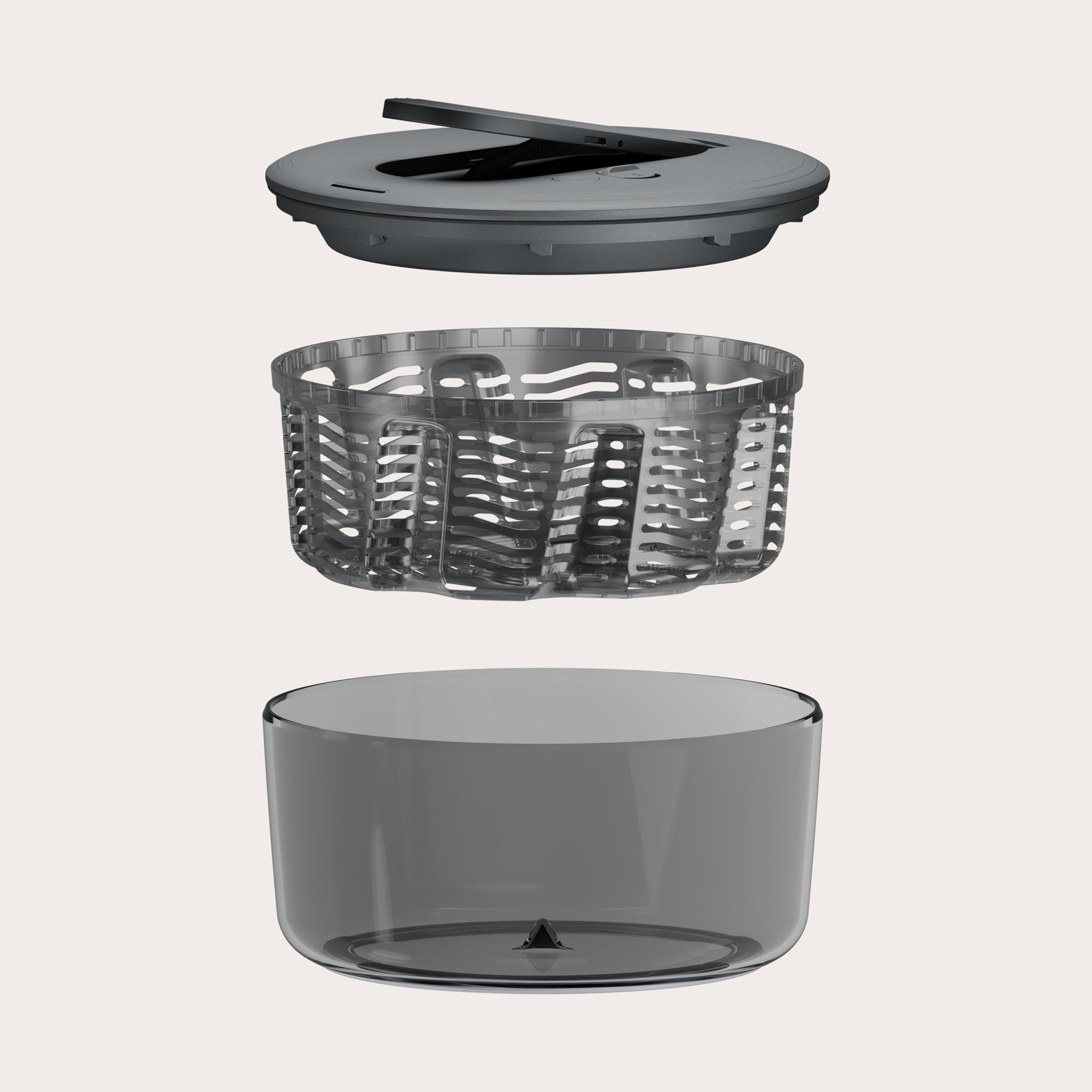 Effortlessly wash and dry salad leaves and greens in seconds with the easy one-handed pump action. The built-in stop button with quick braking action ensures complete control. Designed for convenience, the clear bowl doubles as a serving dish, making it perfect for preparing and presenting fresh, crisp salads with ease.